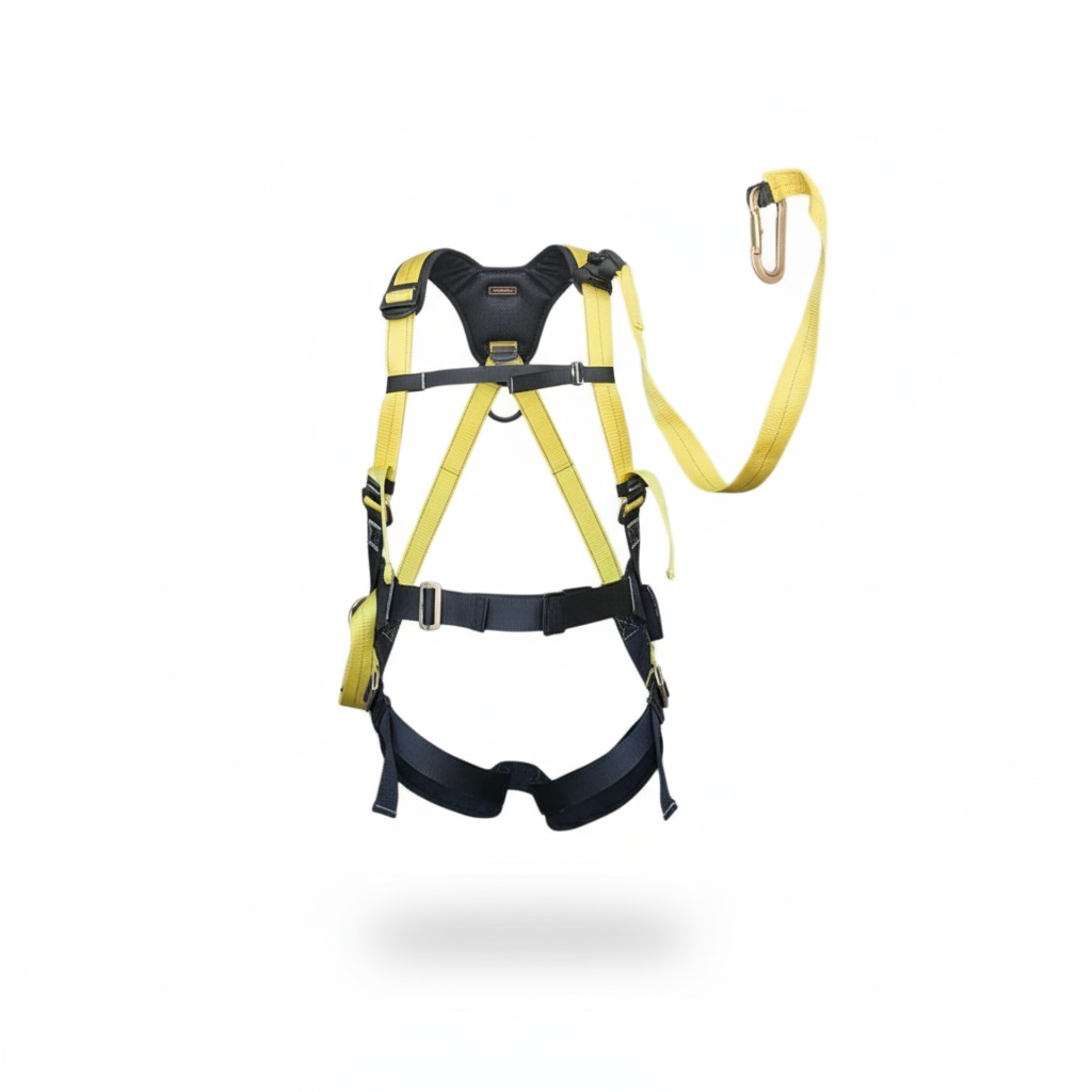 ARNES ANTICAÍDAS, CON AMARRE 1.5m INCORPORADO con amortiguador, MOSQUETÓN STD 18MM – me10412